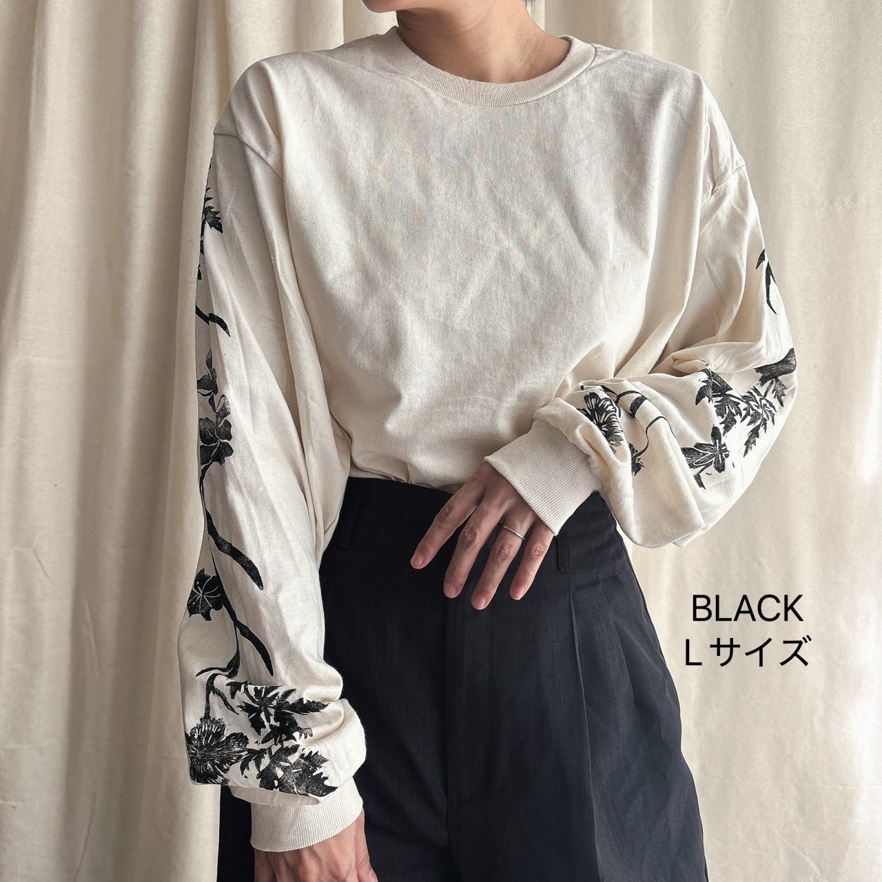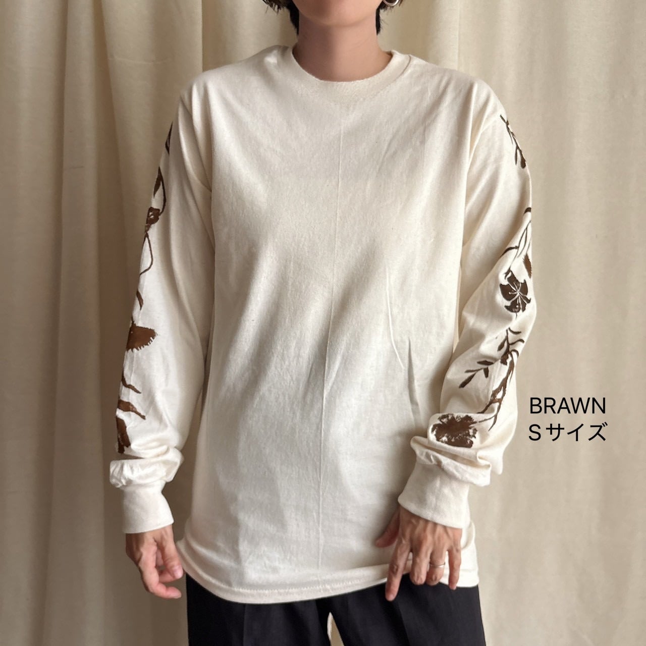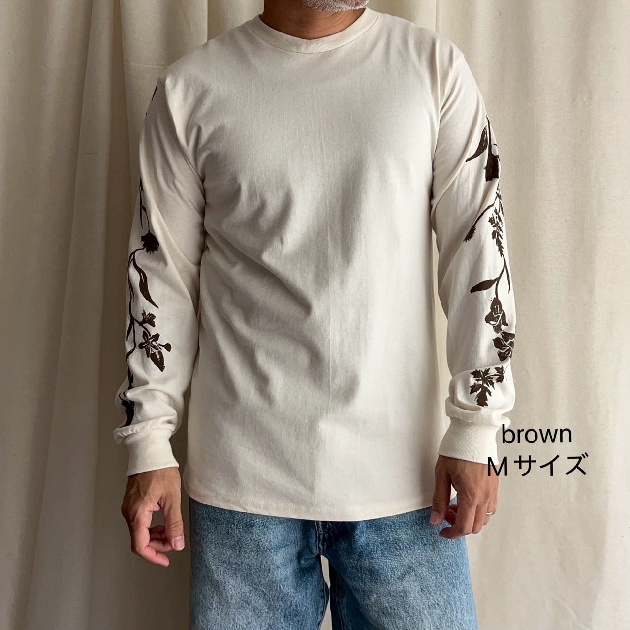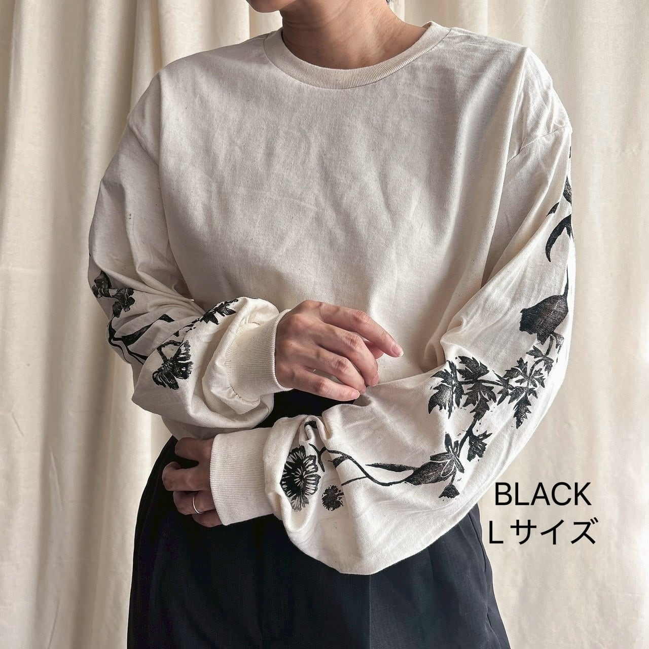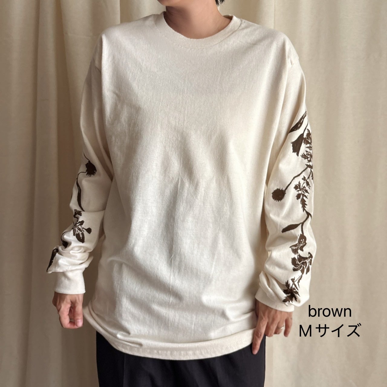 【必ず詳細を読んでからご注文ください】mui okinawaブロックプリント『ガジュマルになりたい野草』長袖Tシャツ