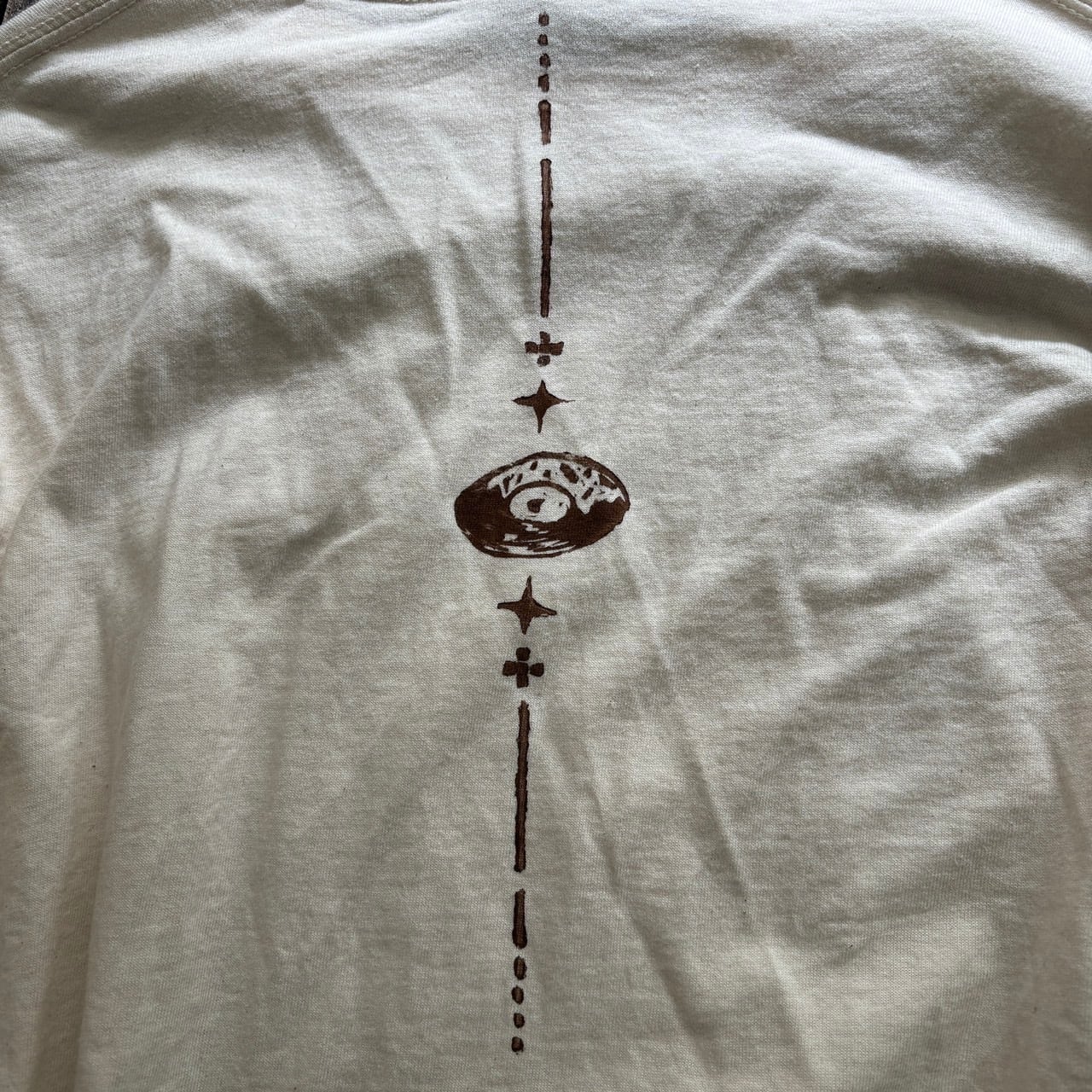背中には水色レコードデザインのドーナッツとレコードが一緒になったデザインの『レコドーナッツ。』がまるで流れ星のようなデザインで背骨にプリントしてます。